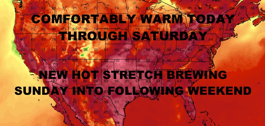 Good afternoon everyone. Comfortably warm air continues to dominate the region and we still have a couple of days left before hot conditions return. They will return in a big way, and we could see 7-10 days of 90’s and high humidity as our textbook 1980’s hot summer continues.