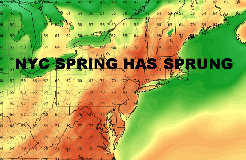 BEAUTIFUL NYC SUNDAY UNSEASONABLY WARM MONDAY TUESDAY – Good morning everyone and what a beautiful morning it is! The sun is with us, the wind has calmed down, and there is no rain in sight. Temps will top out today between 65-70 degrees (cooler at the shore) and make for a perfect early April rest of the weekend. Things warm up a bit tomorrow and Tuesday, with temps 70-80 in most areas (cooler at the shore) and sunny skies.