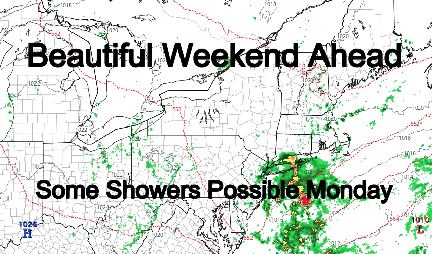 Good morning everyone. We have a beautiful and fairly seasonable weekend ahead before clouds and some showers return on Monday. Overall we are looking very good, and we’re not expecting any extreme weather in either direction.
