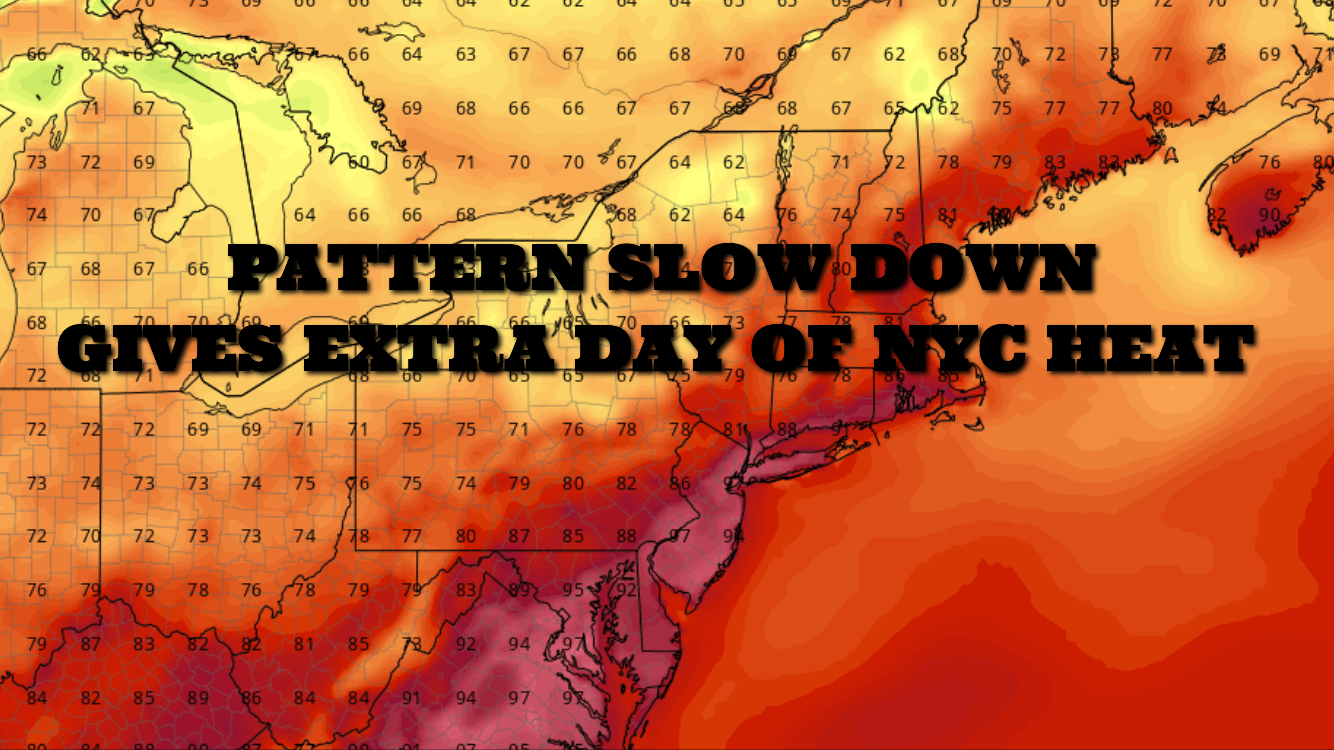 Good morning everyone and “watch me for the changes”. NYC may endure an extra hot one due to a slight delay in our relief, plus a change in the angle of approach for our expected cold front. This will not only change the dynamics in terms of how we cool down, but also how our Labor Day Weekend looks.