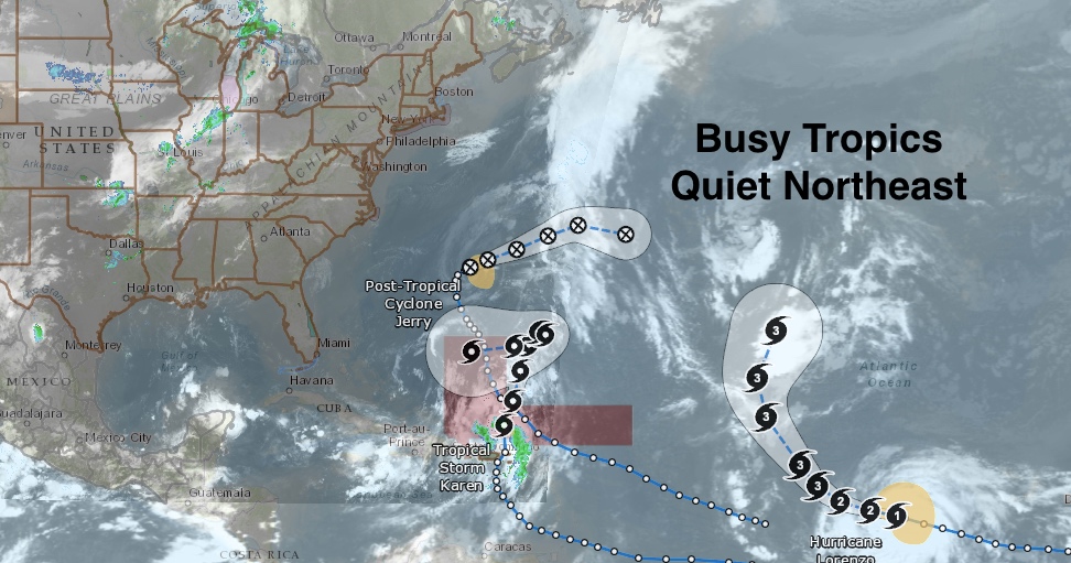 The tropics remain busy while we remain quiet, but I have to keep an eye on Karen to see what she does. All in all, I’m not expecting anything major out of this for the SE coast, but it bears watching anyway.