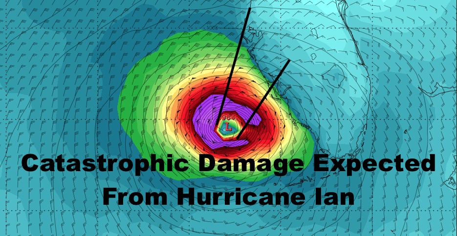 On top of the storm surge, Category 3 winds with possibly Category 4 gusts, are possible where Ian makes landfall. This will do major structural damage or cause structural failure to most homes not built to modern code, and there are MANY out there built from the 1950’s through 90’s. For those in the path and in an area where Ian’s eye wall may make landfall, you should also be making pans to evacuate and get out ASAP.