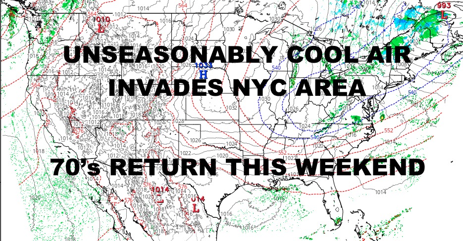 Temps modify slightly on Thursday with upper 50’s returning; then a full modification on Friday with mid 60’s. It’ll remain cool to cold overnight with low to mid 40’s in the City, colder north and west.