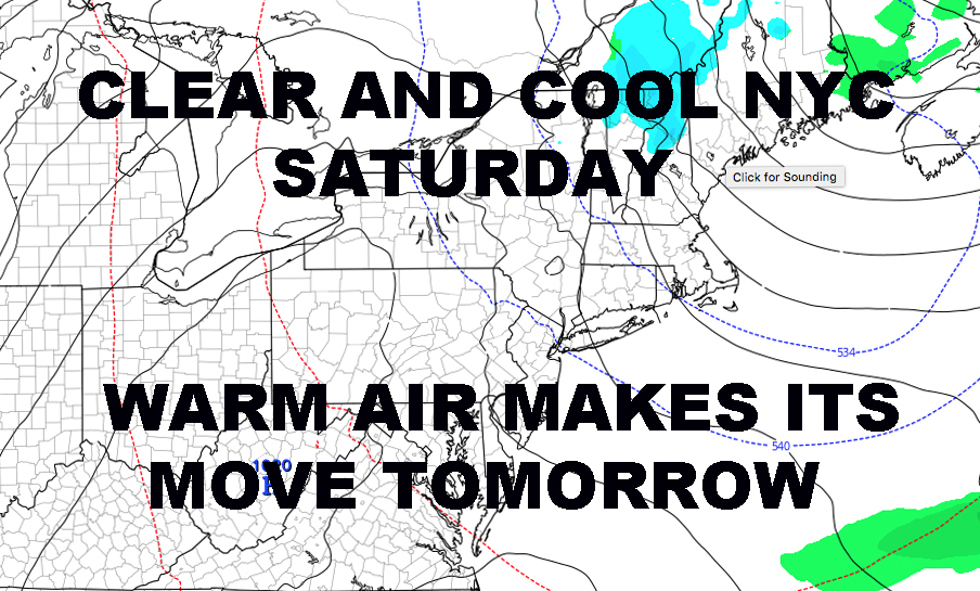CLEAR COOL NYC SATURDAY WARMTH MOVES ACROSS TOMORROW