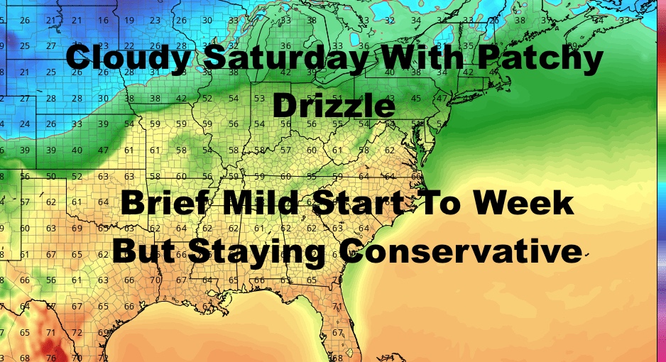As of now, I’m not jumping on the 60’s bandwagon and called for low 50’s in yesterday’s forecast for Monday. I’m going to stick with that for now, and we may even have to adjust it down a bit if the mild air doesn’t make it fully into the air. If it does, then we will adjust as needed, but I’m staying conservative for now.