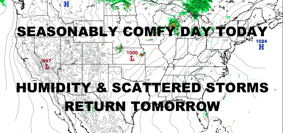 Good morning everyone. We have a simply fantastic day in much of the Northeast, with sunshine, low humidity, and very tolerable temps on the mild side. High pressure dominates today, but the return flow tomorrow and Sunday will bring back clouds, humidity, warmer temps, and the risk for some scattered heavy showers & storms. We are still keeping an eye on the long range, and the end of next week continues to look hot as 90’s and oppressive conditions return.