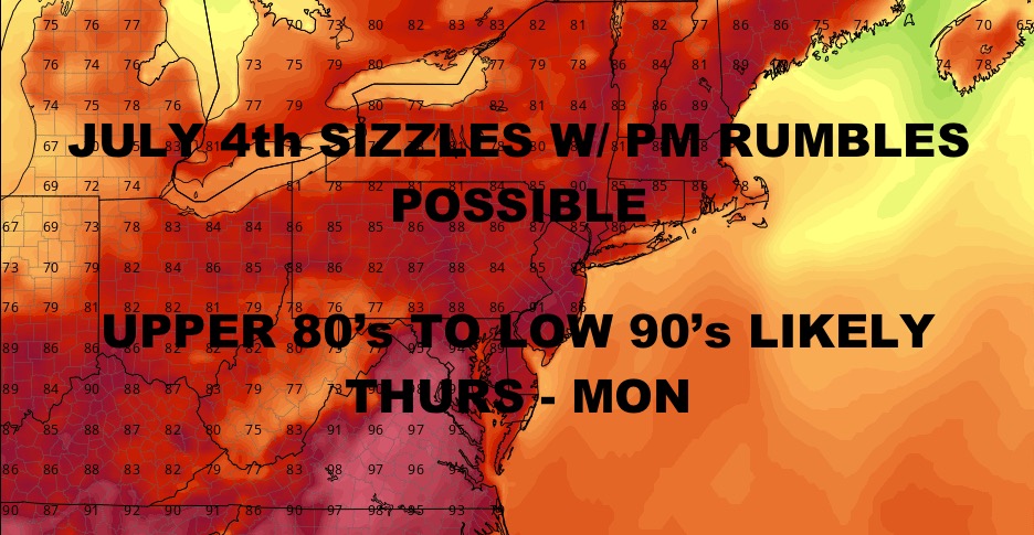 Good late morning everyone. We have ourselves a really nice day in the Northeast as heat rages on elsewhere. That heat will be returning late in the week, but for now, you can enjoy comfortably warm air until Thursday. Thursday’s heat and humidity increase, will also come with the chance of some scattered PM storms each day with the help of sunshine working the atmosphere and a drying front sagging across the Great Lakes region.
