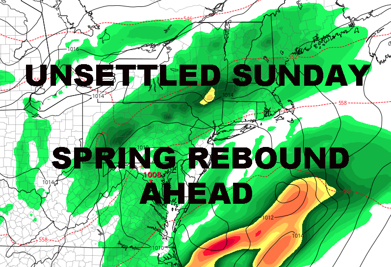 GLOOMY NYC SUNDAY PRECEDES SPRING RETURN – Good morning everyone. My concerns about Sunday have come to fruition in terms of today being the better day of the weekend. Plus, the gloom will be short-lived as promised with the return of some true, spring-time temperatures.