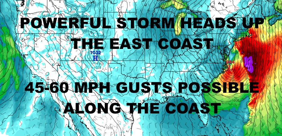 As our Nor’easter deepens, winds will become even more powerful; strong enough to the point at which High Wind Warnings were needed for parts of New York City, Long Island, and coastal parts of New England. Winds along the immediate shore could gust 45-60+mph, especially the further east you go. Even more impressive, Hurricane Force winds are possible well offshore, causing a major hazard to shipping lanes.