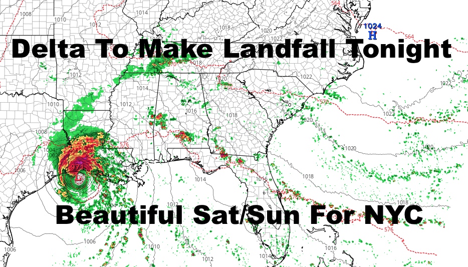 Good late morning everyone. We have another beautiful but seasonably cool day today, and things will be modifying very quickly with warm air rushing in tomorrow. Hurricane Delta makes landfall tonight, bringing with it damaging winds and life threatening storm surge for parts of the Louisiana coast.