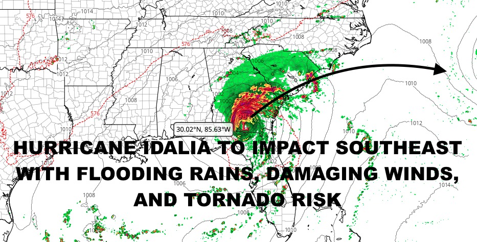 As Idalia moves inland, to will expand in terms of precip and wind-field. The stationary front protecting northernmost Georgia, Tennessee, and Kentucky, will help steer Idalia along the Southeast coast just inland, then out to sea somewhere in between Georgetown and Myrtle Beach, SC. Tropical storm force winds, plus some hurricane force gusts, will be felt in the strongest of rain bands. We’ll also see copious amounts of rain that’ll touch off flash flooding in low lying areas and areas along rivers & streams. We also have to be on the lookout for brief tornadoes, but they happen so fast, it’ll be hard to give proper warnings.