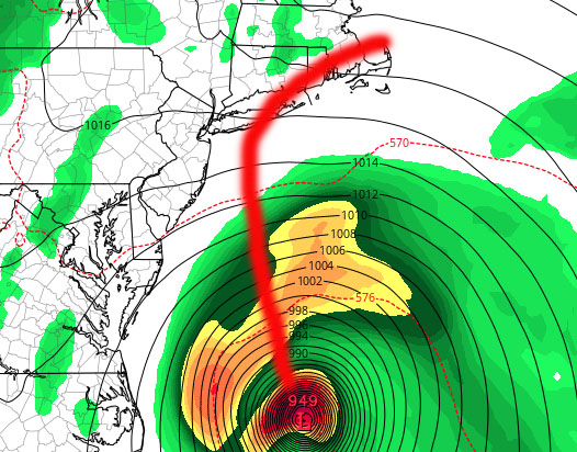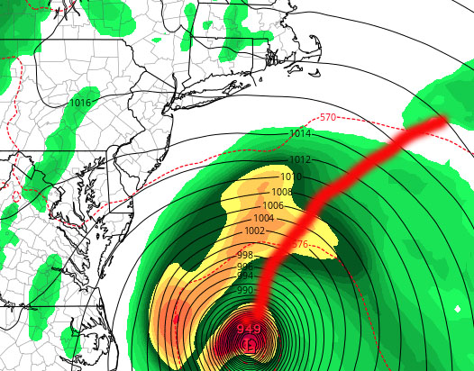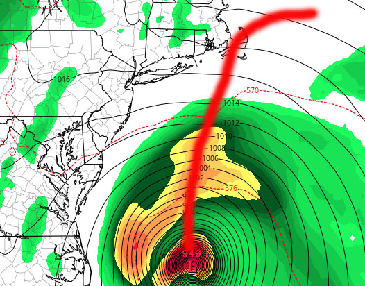 Scenario 1 (least likely but definitely still in the cards as of now) – Jose cuts over through central or eastern Long Island. Depending on the arrival in terms of high tide, Jose could be capable of moderate flooding in areas that flood during a bad nor’easter. That would mean certain areas of the north shore, Great South Bay, Freeport, Baldwin, northern (bayside/canals) sections of Long Beach, Gerritsen, Rockaway, and Broad Channel. While flooding wouldn’t be life threatening unless you put yourself in a situation, water damage would be possible in flood prone areas, including cars left on the streets in low lying areas. Beach erosion, extremely rough surf, and rip currents would be a given.