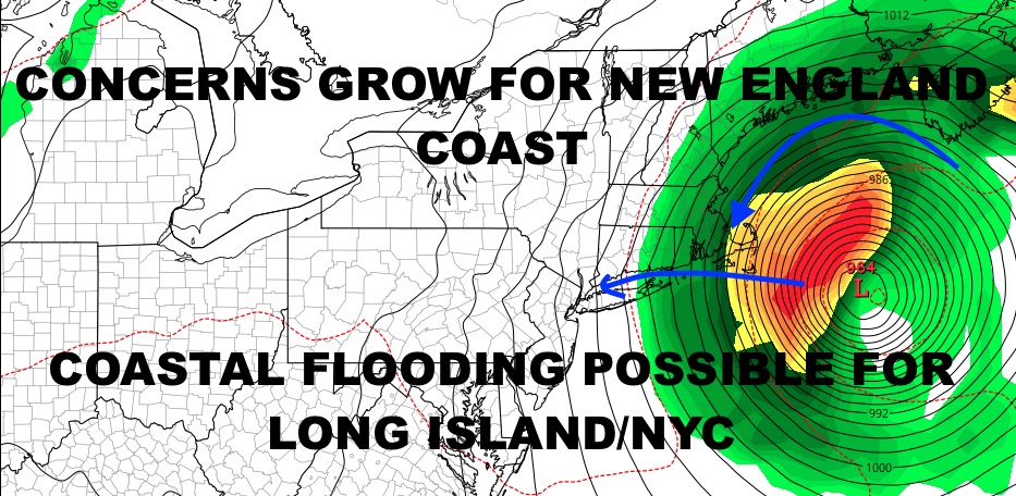 Combined with coming off of a new moon, some storm surge is expected here. Not everyone will see issues, but if you see coastal flooding during a powerful Nor’Easter, then you need to take action to protect property. Areas of the south shore will most likely see a 1-2ft storm surge, which means at high tide, areas such as Freeport, Lindenhurst, Broad Channel, Island Park, and the flood prone areas of Long Beach, could see some inundation in spots. On the north shore a 1-3ft storm surge is expected. This could put Bayville and other low-lying areas at risk for some inundation.