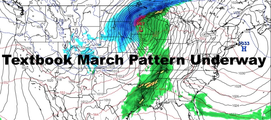Good morning everyone. March is in full swing now and all indicators point to a typical one this year. A little bit of mild, a little bit of cold, lots of wind, and some rain every 4-7 days. You’ll hear the hyperbole on the news about “unprecedented spring snowstorms”, but I can assure you that for the Rockies, Upper Midwest, and Upper Great Lakes states, this is their wheelhouse and very typical this time of year.