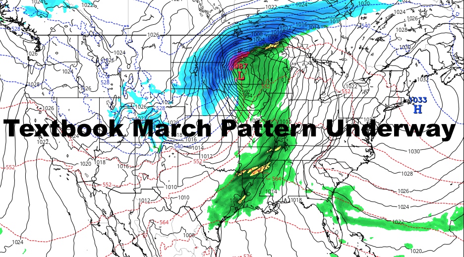 Good morning everyone. March is in full swing now and all indicators point to a typical one this year. A little bit of mild, a little bit of cold, lots of wind, and some rain every 4-7 days. You’ll hear the hyperbole on the news about “unprecedented spring snowstorms”, but I can assure you that for the Rockies, Upper Midwest, and Upper Great Lakes states, this is their wheelhouse and very typical this time of year.