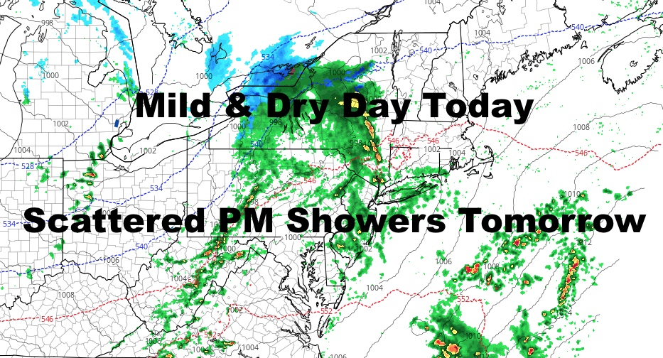 Good morning everyone. We have a fairly nice day today before the clouds begin to increase with our next system that’ll bring some scattered rain tomorrow. Somewhat mild temps will rule for the entire week, but nothing record breaking and winds will vary. There’s also a lot of hype about a possible system early next weekend, but I don’t see anything of significance if anything at all.