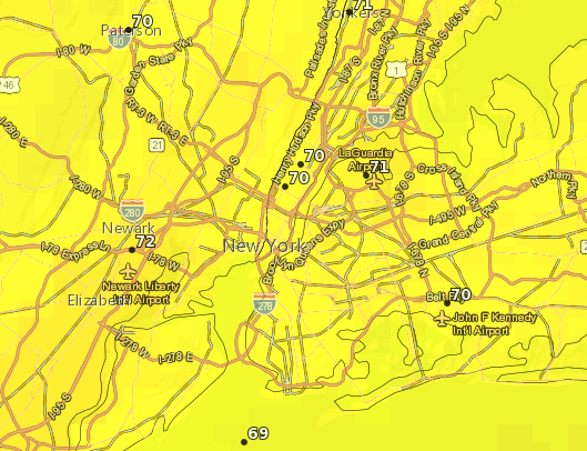 Thursday will likely be the warmest day of the week for NYC. Afternoon highs will reach 70 degrees in most spots. Any sun will give way to clouds as a cold front approaches from the west. A light shower is possible during the late afternoon hours, but there will not be a ton of moisture by the time the trough reaches us.