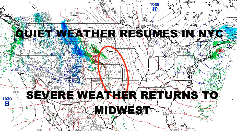 We’ll get the party started by this afternoon, with a thin line of severe weather firing up and moving through Nebraska, Kansas, and South Dakota. These storms will be capable of damaging hail, tornadoes, and strong straight-line winds. That line should fizzle out, then re-fire this evening/overnight in Oklahoma, NE Texas, and Arkansas before racing ENE. We’ll be watching for the same threats with that secondary line of severe weather.