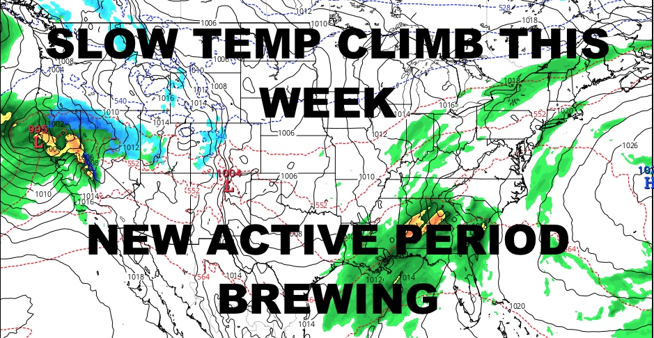 Good late morning everyone. We have some clouds this morning that’ll clear out as the day goes on, giving way to modifying temps and a more comfortable workweek. Meanwhile, we have a more active pattern brewing after this quiet, dry, and milder period.