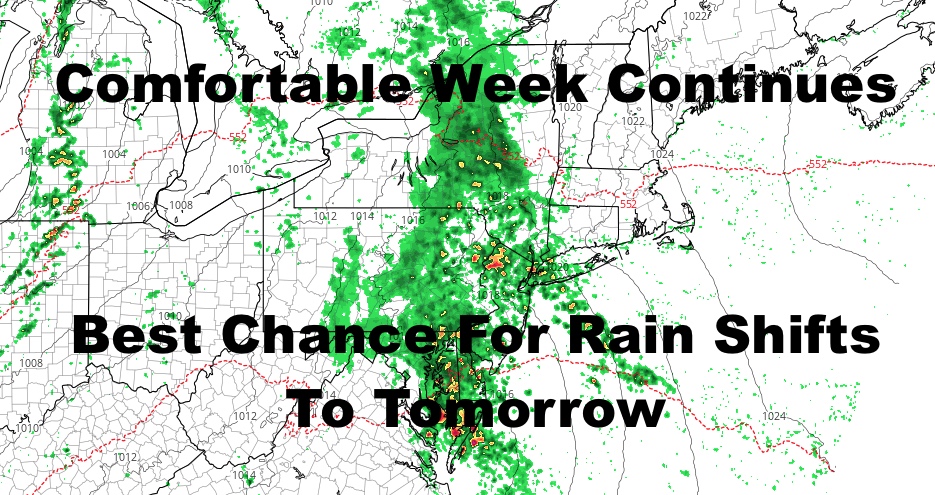 Good morning everyone. We have a cloudy and foggy start today, but don’t let that fool you as we actually have a nice day shaping up. Tomorrow however, the forecast has shifted towards a more showery one, and that’ll be the best the chance of rain all week.