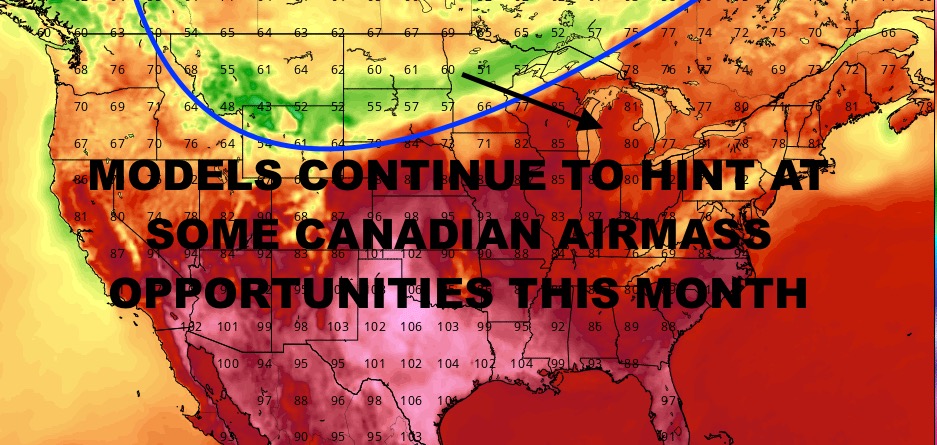 Good afternoon everyone. We continue looking at the long range since things are relatively quiet in the area till Friday. Run after run, we’re showing a shift in the pattern that will equate to some opportunities for some Canadian air and much more comfortable conditions. That being said, it’s still August, so we also have a mix between comfortably warm temps, and some hot conditions here and there.