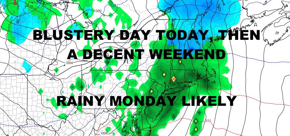 Look for a blustery day today with temperatures in the 50-55 range, which is on par for this time of year.