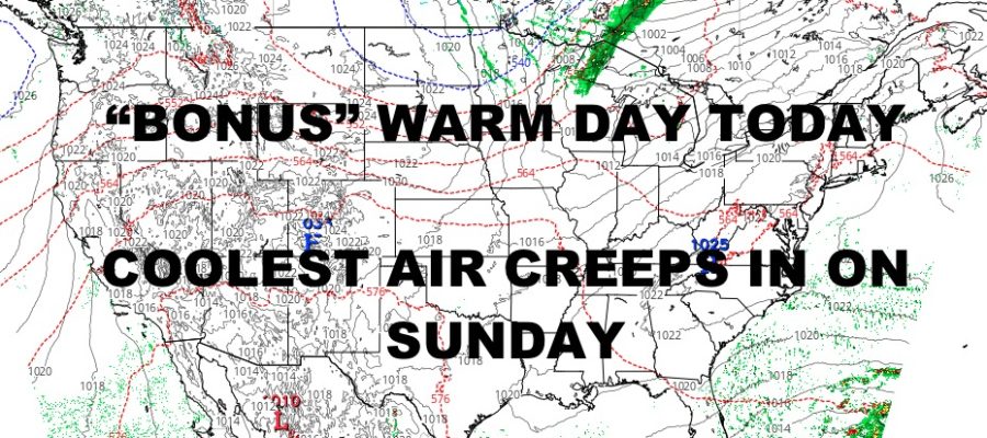 We hold onto 60’s for one more day on Saturday, then look for mid to upper 50’s on Sunday with sun & clouds.