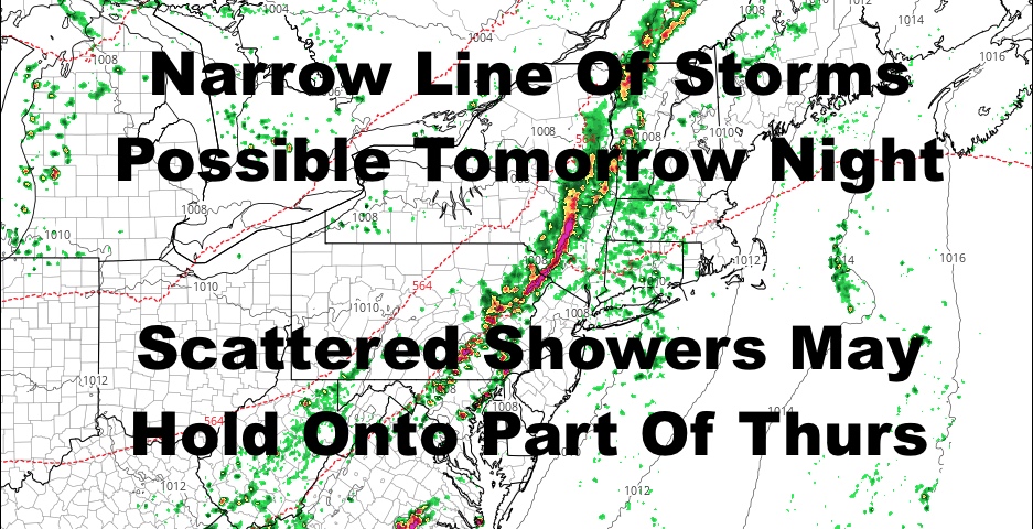 Most of tomorrow looks dry with a mix of sun & clouds. We’ll have a humid high in the low to mid 80’s, then we’ll be keeping an eye on the radar late evening. As of now, I think any line of storms that does form will be narrow and fast moving. They may also not make it into our area intact due to the loss of fuel from the sun. We’ll watch it though, and anything that does approach will probably be knocking on our door between 10pm-2am.