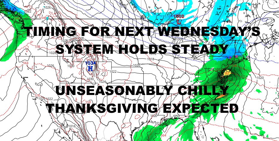 Good morning everyone. We continue to watch the Thanksgiving Holiday Weekend forecast and fine tune everything as far as timing of chilly air (and cold nights), plus another system that will near the region over the weekend itself.