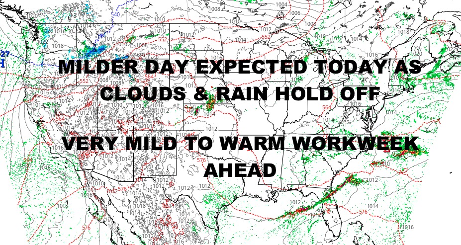 Good morning everyone. Clouds and rain heading into the NYC area have held off long enough to give patchy spots a sunnier and milder day than previously expected. That rain however, is still making it slowly your way, so expect the nice day to shut off soon. Regardless, we have a beautiful day tomorrow in much of the Northeast, plus a beautiful and mild to warm weekend. By Thursday, mid 80’s could grace the area, with maybe even some 85-90 degree temps for interior parts of the region before a cold front swings by.