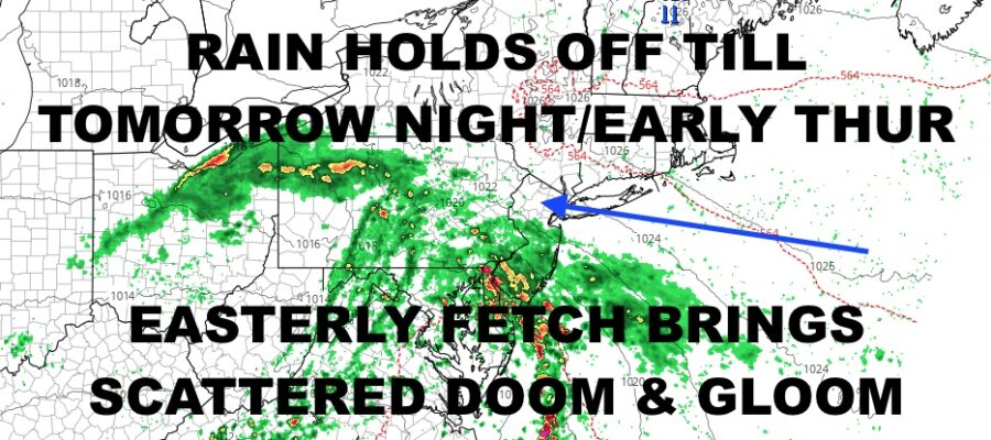 Good afternoon everyone. Do you want the good news first, or the bad news first? Let’s do the good news first – the smoke is gone for now. The bad news is that an easterly fetch blowing the smoke and haze away, will be the precursor to some doom and gloom Thursday onward.