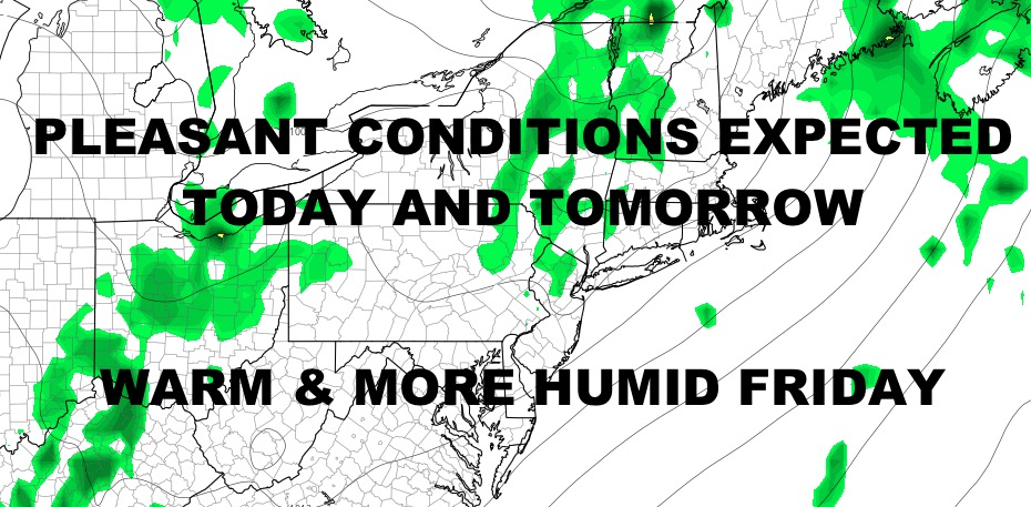 Good morning everyone. Cooler temps return for today and tomorrow, but we remain on the pleasant and seasonable side. Our next chance of rain is late on Friday in the form of some scattered showers and storms. However, I believe the majority of the energy goes N&W of the NYC area, but we may still sneak a shower or storm in. More organized rain is expected on Saturday with on and off showers, then some sunshine returns on Sunday with the chance of a renegade shower.