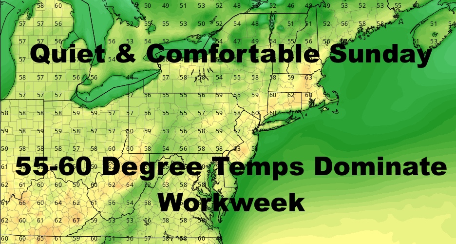 Good morning everyone and happy Sunday. We have another winner today as sunshine dominates with seasonably comfortable temps. That’ll be the name of the game all week, and we stay dry until late Thursday/Friday; although comfortable conditions stick with us through the clouds and rain.