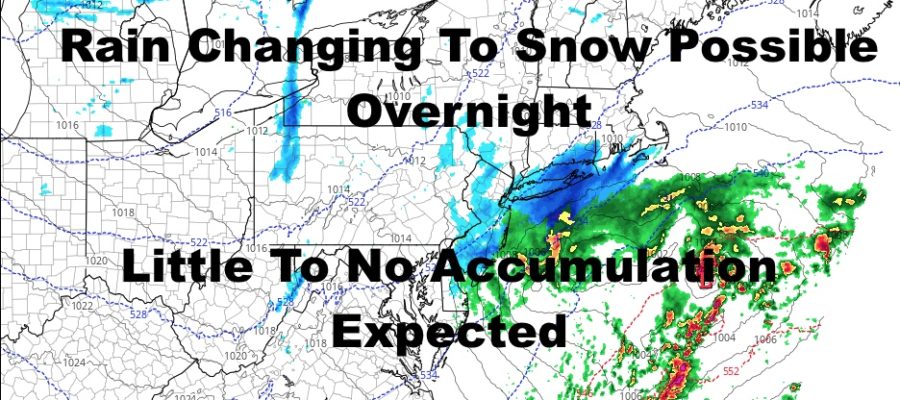 Look for clouds to increase throughout the day and highs near 40 or just above. Overnight, we’ll have the slight chance of some light rain. Then as that system moves off the coast, colder air will bleed in and change anything that is falling, to light snow.