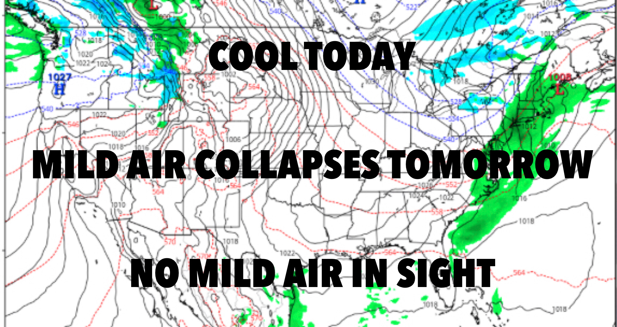 Overall, we continue to struggle over the next couple of weeks unless something breaks. An active pattern will continue to bring reinforcing shots of cool air, while the maritime fights back every time milder air tries to push in.