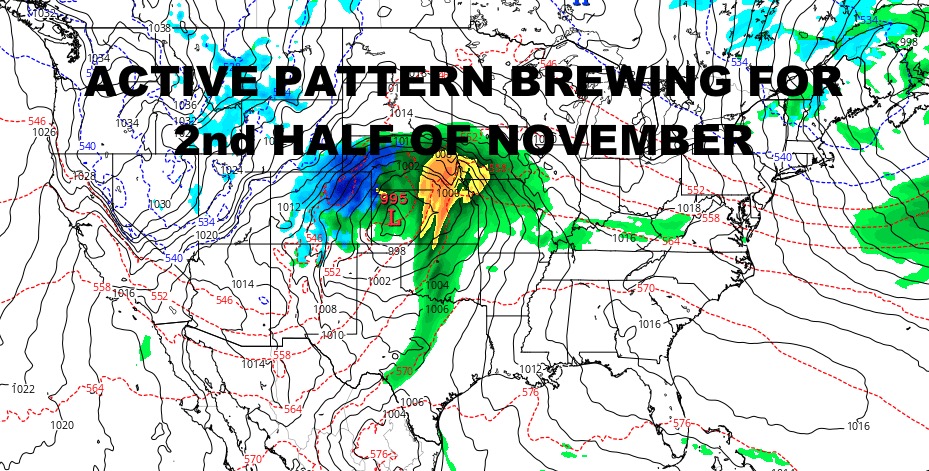 Heavy snows in the Pacific Northwest and mountainous areas of the Southwest, will translate into heavy snows for eastern Colorado and western Nebraska. Ahead of it, we will be watching closely for the risk of widespread severe weather. This will be very similar to a spring-time storm, but in reverse as we are on a downward trend temp-wise as opposed to upward in the spring.