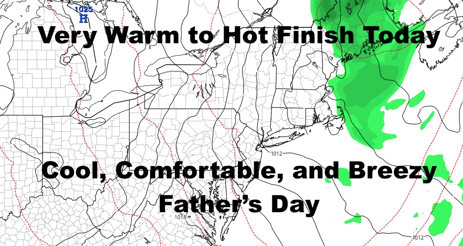 Father’s Day weekend is looking like a cool and breezy one. Nothing outrageous, but definitely a sharp contrast from today. Expect sunshine, breezy conditions, and highs in the low 70’s tomorrow. For Father’s Day itself, sunshine remains as does the breeze, and we will get into the mid 70’s for a perfect day.