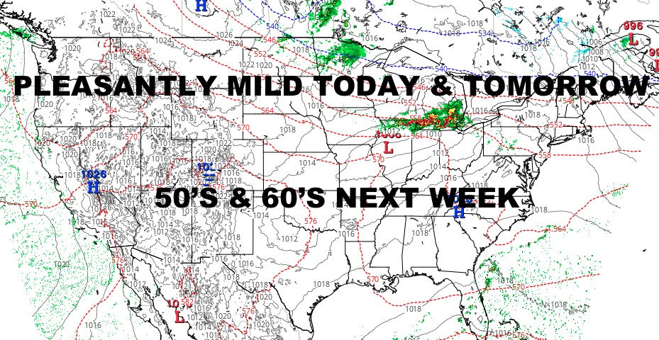 That front coming down is going to knock into the mild to warm air ahead of it. Low pressure forming along it will most likely help spawn some heavy showers and thunderstorms across parts of Wisconsin, Illinois, Indiana, Michigan, and Ohio late tomorrow and into the overnight hours.