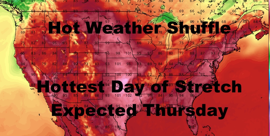 Thursday will be the hottest day of this stretch, with near 100 degree temps away from south-facing shores and the Forks. Best chance to crack 100 will be just west of NYC in the Newark area, plus maybe a few spots in interior Brooklyn, Queens, and Nassau.