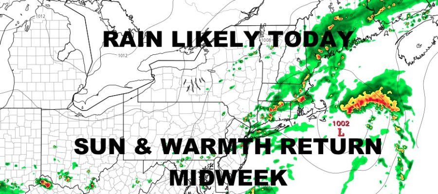 Good morning everyone. We have ourselves a rainy day today before a few blue breaks return tomorrow. Overall, we remain unsettled in spots over the next 4 days before warmth and sunshine return on Wednesday. We could also see some very warm conditions Thursday through Saturday depending on the timing of our next front.