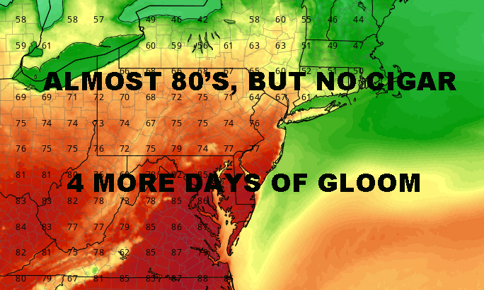 We’ll watch everything as it unfolds, but I think for NYC proper, we get into the upper 60’s to low 70’s; especially in parts of Staten Island, Manhattan, downtown Brooklyn, Bronx, and central Queens. Any extra sunshine and we could get into the 75 realm. More fog and gloom and we shave a few points off in the 60’s. It’s a tough one, but we’ll have to approach it delicately.