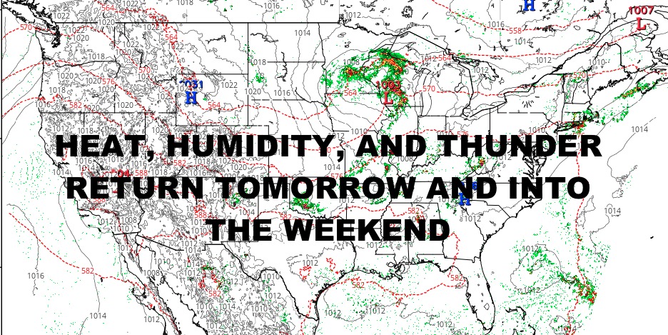 Saturday will also be oppressive with more upper 80’s to near 90, and we’ll see another chance of heavy PM storms. Sunday dries out precip-wise, but we keep the near 90 temps for a true summer feel.