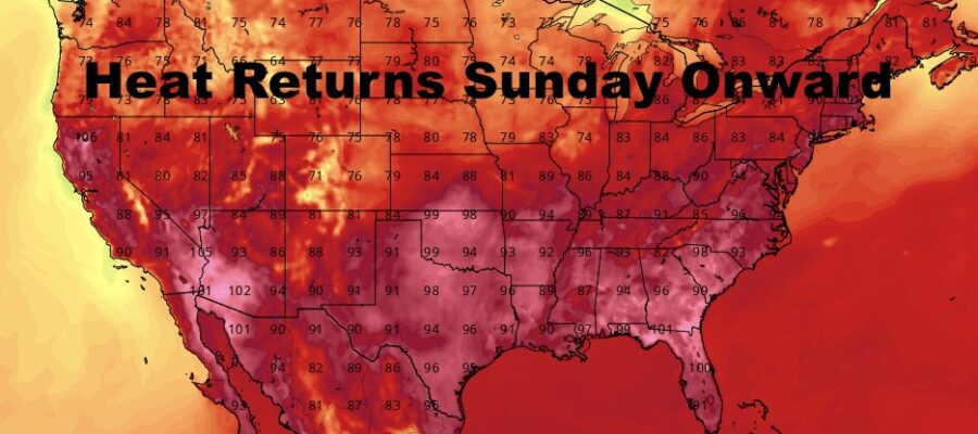 We slowly begin to warm up on Saturday with low to mid 80’s and the slight chance of a storm; then full sunshine returns and we easily pop back into the upper 80’s to near 90 on Sunday.