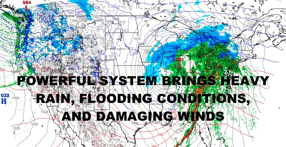 That line of severe weather will continue to race ENE and swing through the Southeast by late evening, then all of that energy will head north into the Mid-Atlantic and Northeast in the form of torrential rain and thunderstorms, damaging winds (especially along the coast, and flooding conditions. For areas of the Southeast, expect isolated fast-moving tornadoes, large hail, damaging winds, and frequent lightning.