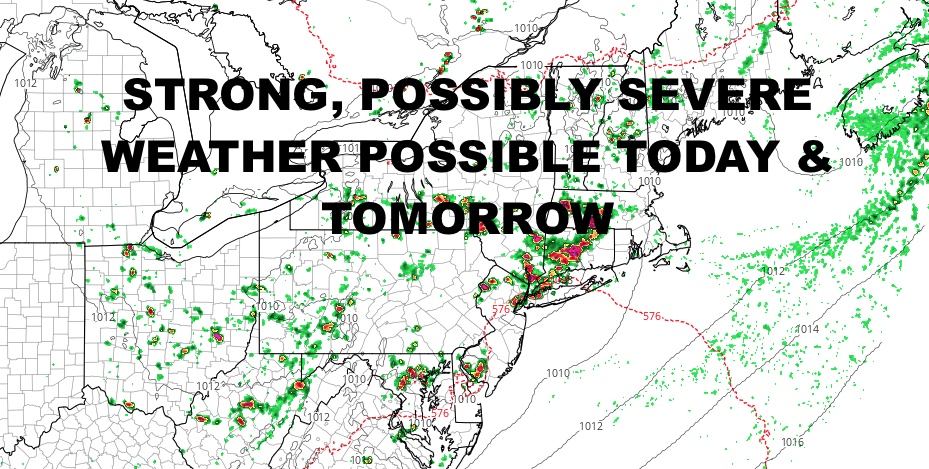 We keep the juice around tomorrow and turn the temps up a notch with some extra sunshine. Highs tomorrow near 90. That sunshine will also help add fuel to the atmosphere and spark off scattered isolated storms. As of this moment, the best chance to see severe storms will be the City and N. Shore of Long Island, but some of those storms could sink south and east.