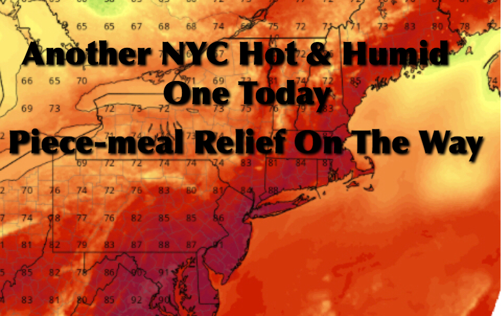 Good morning everyone. NYC continues to bake in heat and humidity that is fairly typical as we get closer to Labor Day Weekend. However, relief is on the way, and we should see a very nice weekend coming up after a slow transition.