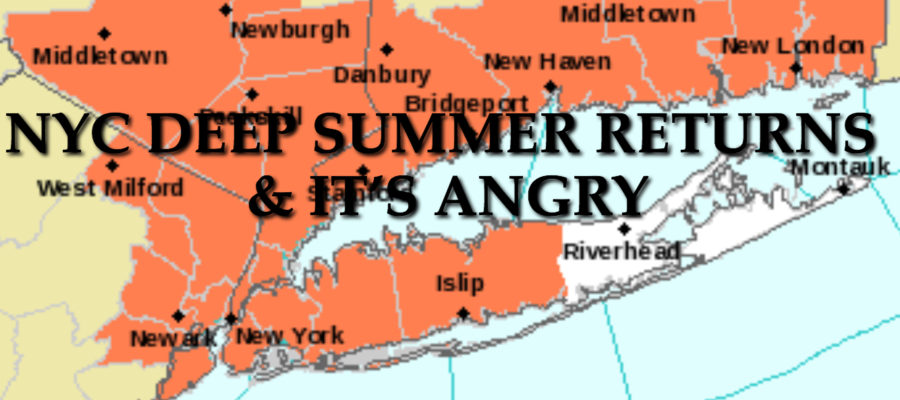 Good early morning everyone. I think it’s safe to say that the thoughts of early fall in August are behind us as we’re about to bake under the searing heat & humidity that is typical of a late summer season in the NYC area. The one bright spot however, is that we should see some needed rain as the heat breaks, and we have a fairly comfortable weekend ahead.
