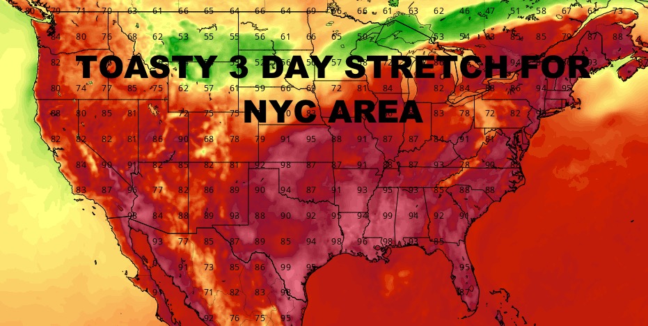 Good morning everyone. Now that the flooding rain is long gone, we are slowly replacing one issue in the form of another. We have a 3 day 90+ degree stretch coming up starting tomorrow along with the risk of an isolated strong to severe storm each day. Typical summer continues……