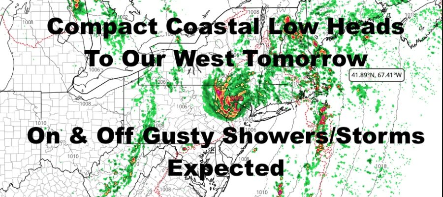 What does that mean for us? Expect our area to be visited by the rain bands forming to the east of that compact low pressure system. That’ll equate to on and off gusty heavy showers and storms. Localized flooding in poor drainage areas is possible, but the biggest flooding concern will be in parts of NE PA and NW NJ as the most concentrated area of precipitation will move over those areas.