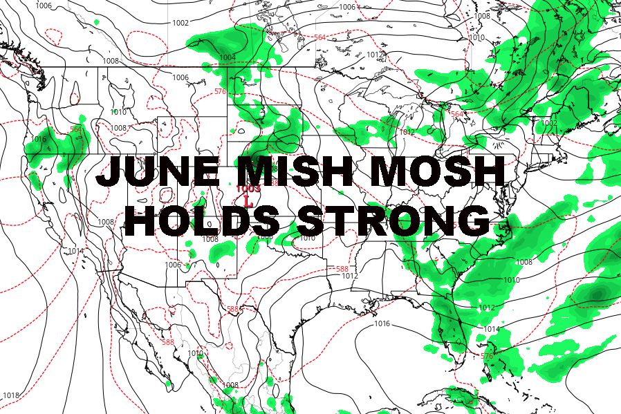 NYC JUNE MISH MOSH WEATHER CONTINUES – Good morning everyone. The mish in the mosh has returned today after a surprising warm and humid one yesterday. We had a few tropical downpours yesterday, which will be replaced with the familiar easterly, raw flow we’ve been experiencing on and off for the past month.